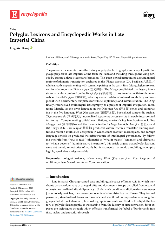 Dec 2025 Ling-Wei Kung, 2025.12, “Polyglot Lexicons and […]