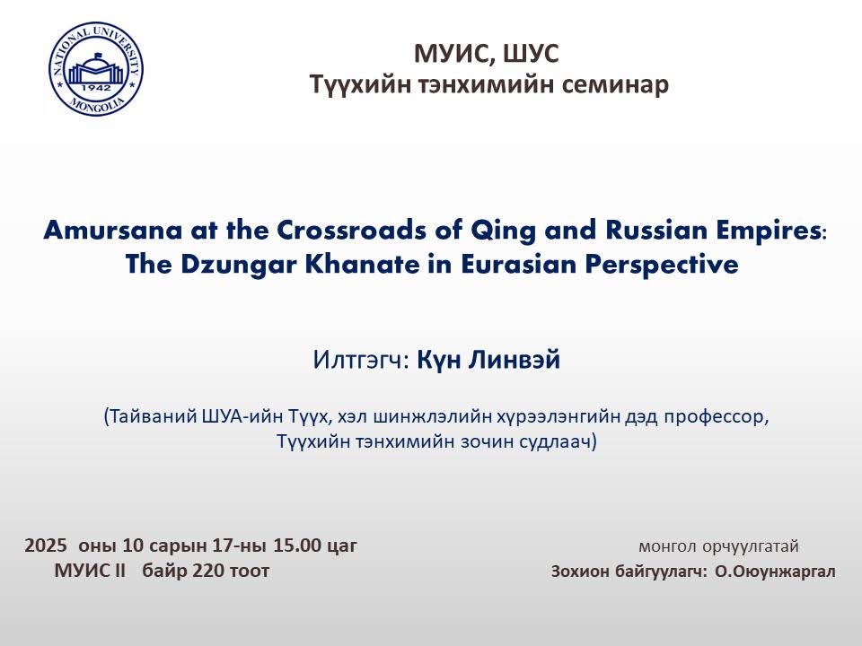 Academic Lecture, Department of History, School of Humanities and Social Sciences, National University of Mongolia