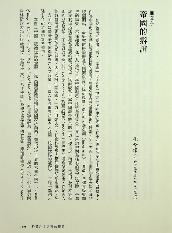 孔令偉,2023年,〈帝國的辯證〉推薦序,收入Krishan Kumar著、胡訢諄譯,《帝國,統治世界的邏輯:從大國起源羅馬到民族國家法蘭西,塑造現代世界的六個帝國》(臺北:聯經出版公司),頁9-12。